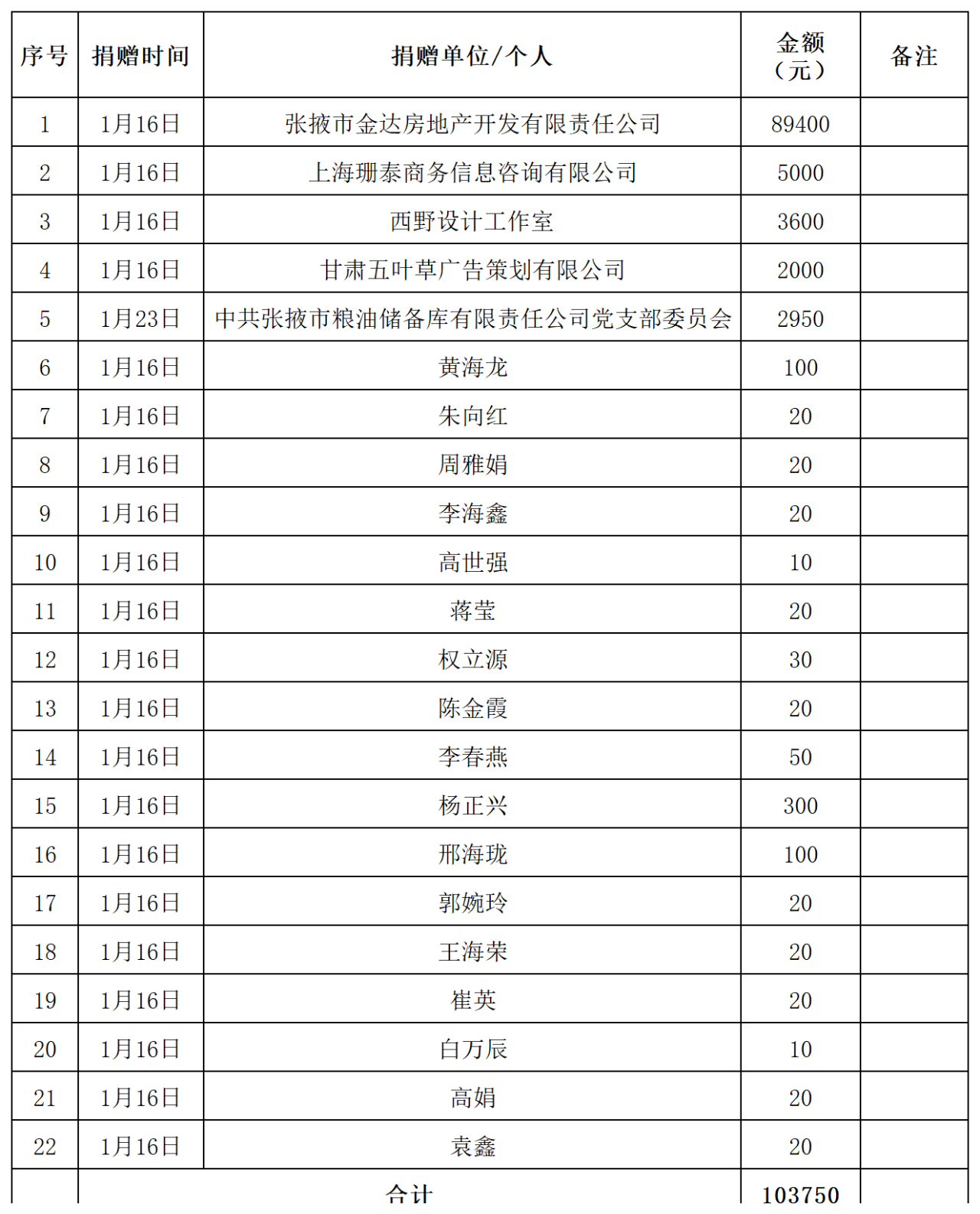 張掖市慈善協(xié)會日喀則市定日縣地震捐款公示(一)